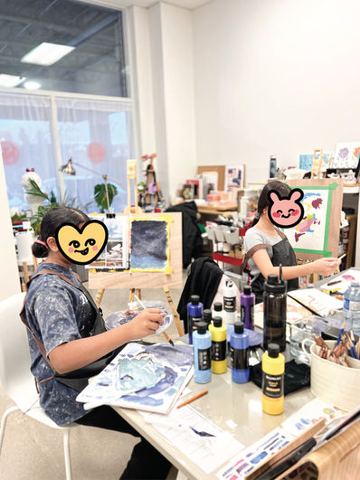 At MZ Arts, we offer art classes in small groups with three levels of instruction: Beginner and Intermediate for ages 6–12, and additional Advanced for ages 13–17. Each class runs 1 to 1.5 hours and combines systematic instruction with personalized projects tailored to each student’s interests and needs. Class time slots are arranged with 30-minute gaps to give parents greater flexibility. Alongside our regular sessions, we also offer special program-based classes during the winter and summer holidays, providing unique themes and creative challenges to enrich their break.